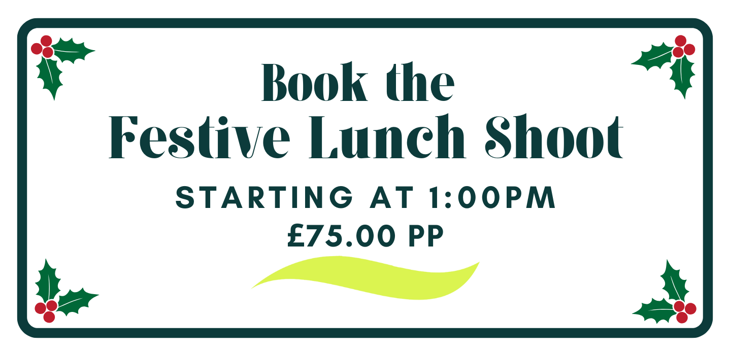 🍽️ Lunchtime Shoot – Kick things off with a 30-clay shoot, followed by a delicious 2 or 3-course festive meal from our set Christmas menu. (Add a third course for just £5 per person.) A warming glass of mulled wine is included — or opt for a tasty alcohol-free alternative!